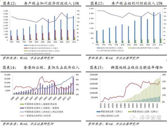 从国外房产税实践来看,美国房产税占地方政府财政收入的15%左右,香港差饷占政府财政收入的5%左右,韩国地税占政府税收收入的20%左右,日本固定资产税占地方税收收入的40%左右。