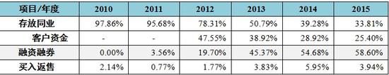 表6 2010-2015年方正证券利息收入构成