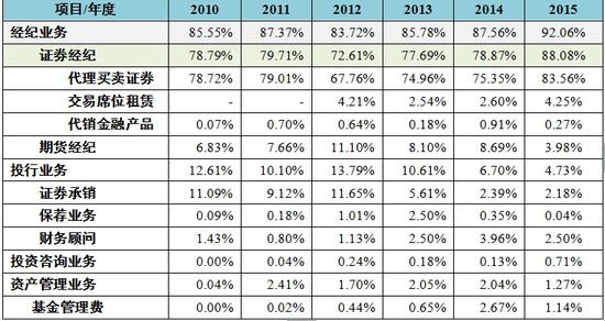 表5 2010-2015年方正证券手续费及佣金收入构成