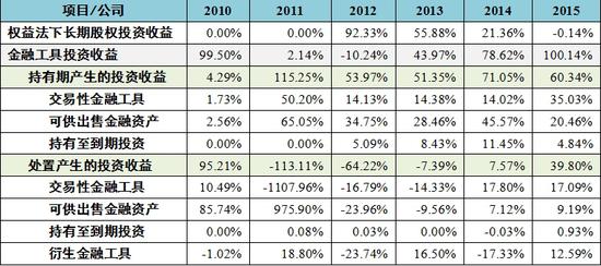 表7 2010-2015年方正证券投资收益构成