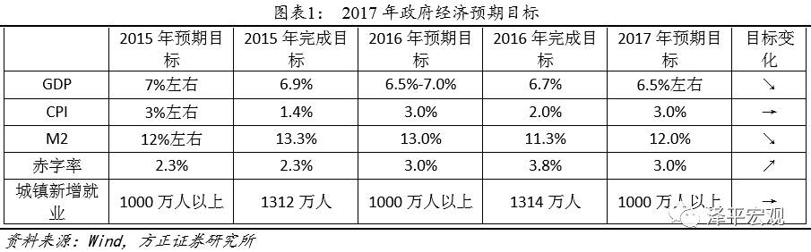 GDP为6.5%左右,较2016预期目标下降;