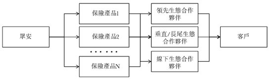 而众安保险,显然不是相同的营销模式。众安将产品嵌入生态系统合作伙伴的互联网平台,让客户可在互联网消费场景中享受简易的购买体验。众安将生态系统分为6类,如下图所示,包括(1)生活消费(2)消费金融(3)健康(4)车险(5)航旅(6)其他