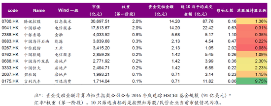 预计可能被纳入的10只红筹股/民营企业标的(以市值为主要依据)。