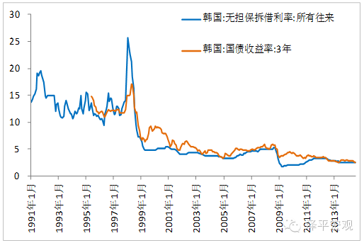 [5]韩国中央银行为了吸收过多的流动性,试图发行货币稳定券强迫商业银行购买,利率明显低于市场水平,直到1997年2月才引入竞争性拍卖方式。