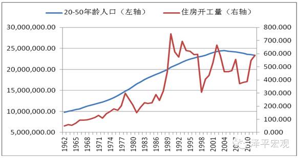3、房地产长周期峰值到达。韩国的房地产长周期出现在90年代中后期。韩国的人口总和生育率在 1970 年代初期开始显著下降,1970-1990 年期间,每年人口出生数量从 101 万下降到 65 万人。因此,1990年前后20-50岁的置业人群到达峰值之后回落,住房销售和开工量开始下降。