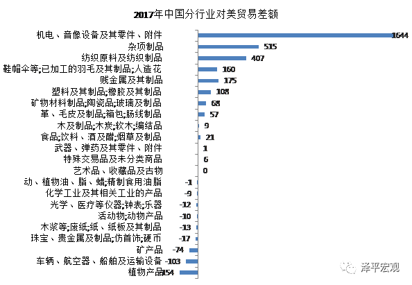 2、如中美贸易战全面升级,对中国高端制造发展及经济增长将产生不利影响,但同时也将势必增加美国民众生活成本,推升美国通胀,制约消费,给全球经济复苏带来阴影。从中美的贸易结构看,中国主要对美出口电机电气音像设备(包括家电、电子)、纺织服装、家具灯具、玩具鞋帽等,中国从美国进口的主要为中间产品和零部件,以大豆、飞机、汽车、集成电路和塑料制品为主。中国贸易顺差较大的行业主要是机电音像设备(包括家电、手机等)、杂项制品(家具玩具运动用品等)、纺织鞋帽,中国贸易逆差较大的行业主要是大豆等农产品、汽车飞机等运输设备、矿产品等。