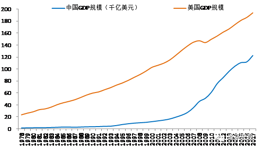 2、美国试图重演1980年代美日贸易战以遏制中国复兴。2017年中国GDP达12万亿美元,相当于美国的63%,并且中国经济增长率6.9%、远高于美国的2.3%。如果按照6%左右的GDP增速再增长十年左右,即大约在2027年前后,中国有望取代美国、成为世界第一大经济体,重回世界之巅。在此背景下,美国一直试图遏制中国复兴。