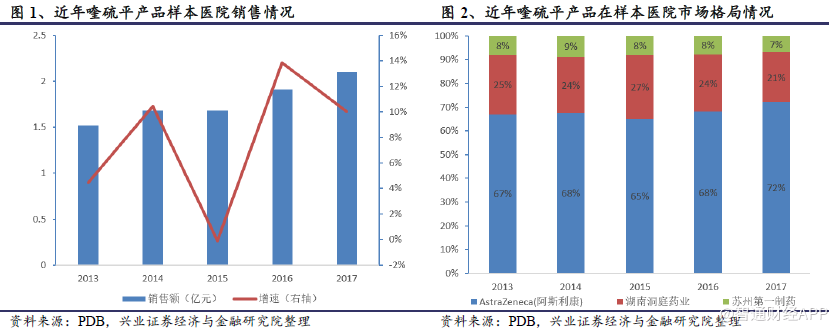 缓释剂型驱动经典药物思瑞康持续增长,具备较好成长空间。思瑞康(富马酸喹硫平)为阿斯利康原研的具有抗抑郁特性的第二代非典型抗精神病药物(AAP),是精神分类症与躁郁症的一线用药,其耐受性良好,起效迅速,曾为阿斯利康全球第二大畅销产品,上市以来处方量已超过1000万,销售推广渠道遍布全球。虽然喹硫平化合物专利已经过期,但缓释剂型思瑞康缓释片的剂型专利和新增适应症(若干地区增加了抑郁症和广泛性焦虑症的适应症)带来的数据保护期延长了思瑞康系列产品生命周期,目前缓释剂型在包括中国在内的很多区域仍为独家产品,缓释技术和特殊辅料也加强了仿制药进入的壁垒。此外,缓释剂型一日一次的服药频率和简单的剂量调节方式提供了更好的依从性,为思瑞康系列带来新的市场活力。2017年普通片剂销售额约8500万美元,缓释片为6300万美元,缓释片增速较快,呈现逐渐取代普通片趋势。