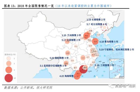(4)第四波是18年3月-6月,主要特征是欠发达城市群加入限购或限售。期间共10城1省出台“限购或限售”政策,主要集中在此前市场较冷淡的哈长城市群(哈尔滨、长春)和西南城市群(昆明、贵阳)等。
