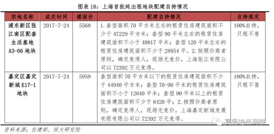 以上海为例,2017年7月上海“十三五”计划提出未来五年供应商品住房45万套,租赁房70万套,各类保障性住房约45万套。租赁房供给占比高达44%,成为供应主流,将充分满足居住需求。7月上海首推纯租赁用地,要求所建物业严格按照“只租不售”模式管理,地块地理位置优越,成交楼面价显著低于市场价。随后上海又将静安区市北高新板块的两块商业用地调整为租赁住宅用地,拟供应近千套租赁住房。纯租赁土地供应是供地制度的创新,一方面增加了租赁房供给,另一方面各区相继成交低地价地块有利于稳定土地市场,形成示范效应。