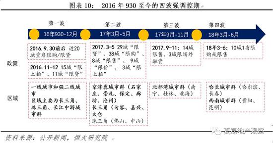 16年9月30日前后,16个一线城市和强二线城市集中重启限购/限贷,标志收紧周期开始。此后经历四波强调控期:
