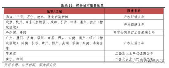 “限售”是本轮调控中行政手段的“创新”之一。2017年3月厦门率先出台“限售”政策,明确新购房屋产权证满2年方可上市交易。此后多地效仿,限售城市从中心城市向外围城市蔓延,18年有昆明、贵阳、兰州、哈尔滨、长春等外围城市加入限售,截至2018年6月已有50余城实施限售。限售城市多数要求限售时间起算点为取得不动产权证(则期房实际限售时间须再加1-2年),少数城市要求为网签合同签订日(哈尔滨、贵阳等)。