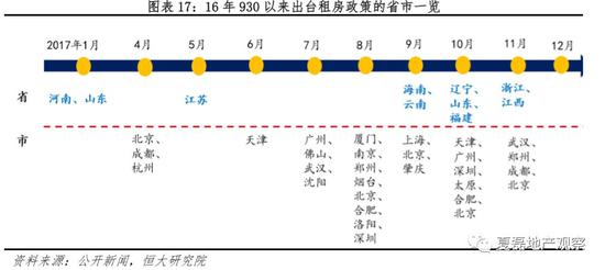 16年下半年随着经济L型企稳以及一二线城市房价暴涨,刺激房地产稳增长的阶段性任务完成,但三四线城市去库存效果区域差异较大,同时金融风险凸显。7月政治局强调“抑制资产泡沫”、10月强调“防风险”、12月中央经济工作会议首次提出“房子是用来住的,不是用来炒的”,强调住房的居住属性,房地产调控目标从刺激转向收紧。