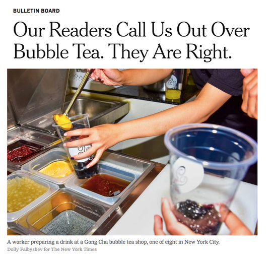 最后编辑不得不发布以“我们读者因为珍珠奶茶骂我们,他们是对的”为标题的文章道歉,重新为珍珠奶茶正名。《纽约时报》详细介绍了珍珠奶茶的历史、如何点单等,并强调珍珠奶茶在美国的历史已有几十年之久,只是新式奶茶连锁店的火爆现象是近年来的一个惊喜。
