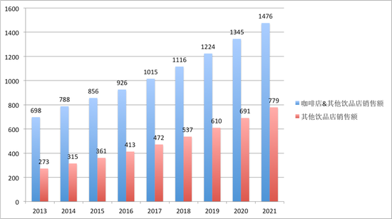 (图为中国咖啡店、其他饮品店销售额 来源:Euromonitor、中信证券研究部)