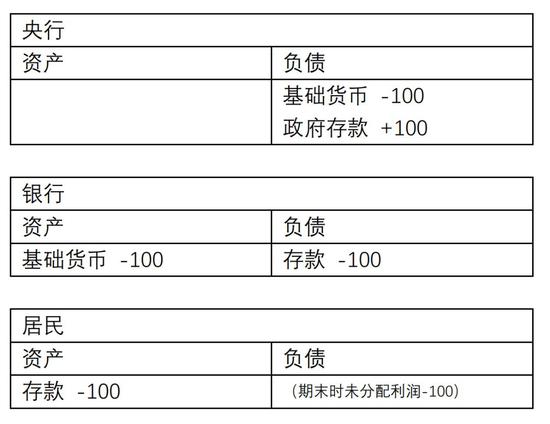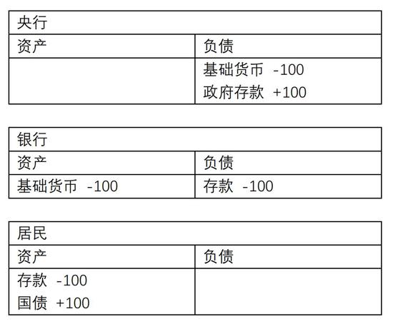 如果是居民把钱交给政府(比如购买国债),充入国库,那么这笔交易更复杂一点,还会涉及广义货币(M2,即居民在银行的存款),基础货币和广义货币同时被回笼。