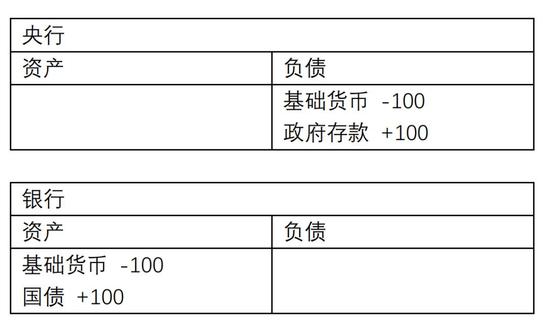 如果财政支出(政府花钱、付公务员工资、偿还债券等),则刚好与上面相反,则投放基础货币。