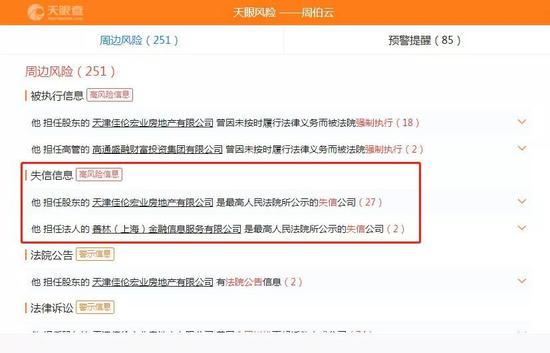一是包装平台。对平台资质、背景、业绩进行全方位包装,使平台看起来正规,值得信赖。如善林金融,做足包装宣传,曾为中国女排高级赞助商,在央视黄金段、各大卫视甚至纽约时代广场、伦敦希思罗机场都有投放广告,在全国开设1000余家线下门店,表面看起来“家大业大”、“大而不倒”骗取投资者信任,非法吸纳了超过600亿的投资。事实上,善林金融有4条以上的行政处罚,主要聚焦在无照经验、虚假宣传等,并没有宣传的那么美好。善林金融的实际控制人周伯云控股的“天津佳伦宏业房地产有限公司”曾27次被最高法院列为失信公司。