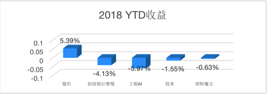 从五家平台的表现来看,绝对收益为正的只有璇玑一家,理财魔方与投米的收益为负,但是相对依然优于沪深300指数同期超过5%的跌幅,而银行系的表现则垫底。