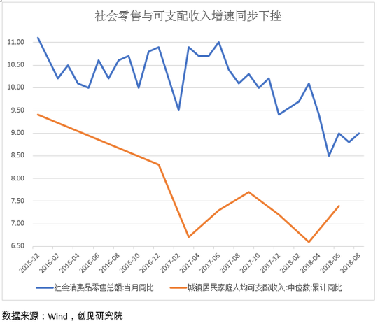 从货币角度看,从“降杠杆”到“稳杠杆”的央行货币宽松预期之下,社会融资近期已有率先企稳反弹迹象,M2若能进一步跟上,则社会零售增速将有可能藉由流动性改善而止跌反弹,并带动可选消费以及CPI探底回升;此外,个人所得税法改革带来的消费者每月结余增加也将成为刺激社会零售的一大政策增量。