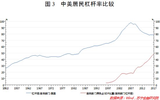 再看我国,自2008年起,居民杠杆率一路飙升,到了2017年也只有49%。这也证明了“中国老太太与美国老太太买房”的段子所言极是,即“一个中国老太太,60岁时终于挣够了钱买了一套房子;一个美国老太太,60岁时终于还清了购房的货款,可是她已经在这房子里面住了30年了”。