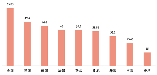 图表8 全球人均住房面积对比(建筑面积折算后)