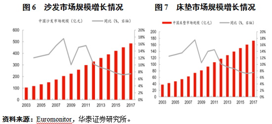 2、沙发市场增长趋缓而床垫市场空间大
