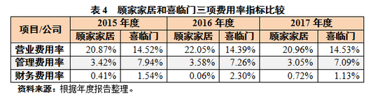 除销售费用率较高外,顾家家居管理费用率和财务费用率均约为喜临门的50%(见表4)。