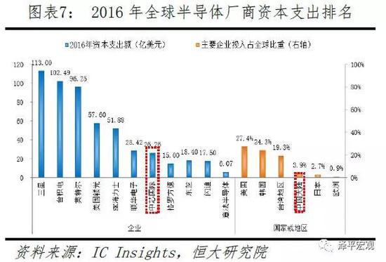 在诸多核心集成电路如服务器MPU、个人电脑MPU、FPGA、DSP等领域,我国都尚无法实现芯片自给。此次中兴事件,正是由于中兴在高端光通信芯片、路由器芯片等方面依赖博通等供应商,以至于一旦被美国制裁就将面临破产风险。对外依赖只是中国在核心芯片领域相当薄弱的外在表现,其实质是在集成电路的各核心产业链环节缺少足够的、长期的资本投入、研发投入与积累。2017年美国芯片巨头英特尔研发支出达到130亿美元、资本支出预计达到120亿美元,仅研发支出就已接近中国全部半导体企业全年的收入之和;高通、博通、英伟达等芯片设计厂商更是将20%左右的销售收入投入用于研发。国内集成电路制造领军企业中芯国际2016年资本开支26.3亿美元、研发投入仅3.18亿美元,如此悬殊的投入对比下,中美半导体领域的产出差距可想而知。