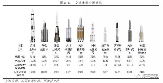 空间技术不单单指具体某项技术,而是囊括从火箭与航天器制造、航天器发射至航天器能稳定运行中涉及到的各项技术。最有代表性的为重型火箭技术、载人航天技术、空间站技术与深空探测技术,从全球视野来看,我国是全球为数不多的能够独立实施登月计划、载人航天计划、天空站计划等,说明我国航天攻克核心技术数量多、涉及范围广;但与美国相比,我国需要在总体效率与质量上继续提升。由于载人航天、空间站与深空探测均需要以重型运载火箭技术为基础,下文以重型火箭技术为例具体分析我国的空间技术实力。