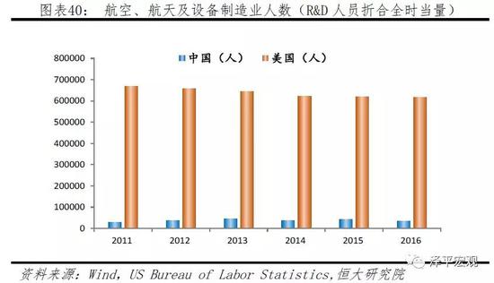 3)专业人才缺乏。我国在专业人才的培育体系与人才支持上欠缺,从业人数差距更大。2016年我国航空、航天及设备制造业人数为35296人,而美国为617420人,相差十倍之多,与航天相关的服务业人数差距更大。