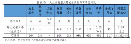 另一方面,我国在拟定的载荷能力对成本和可靠性把控上较为突出。火箭设计是整体概念,各国根据相应的经济和政策情况来设计最符合国情的方案。因此,在设计环节中,成本和执行复杂任务的可靠性也是检测火箭设计的合理性与优异性的重要指标。对比史上各大重型火箭,我国长征五号以较低发射成本和高达98%可靠性,显示出我国在这一环节的技术能力。