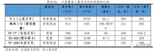 2)第二是整体动力系统。为了挣脱地球万有引力的束缚,根据牛顿第二和第三定律,火箭需要达到最小速度为7.9公里/秒。除了达到飞行速度要求,重型火箭要需要满足在多载荷情况下的上千吨起飞推力,从而考验各国对发动机的研发技术。测量发动机相关的核心指标可以分为运载能力与效率这两大类别。