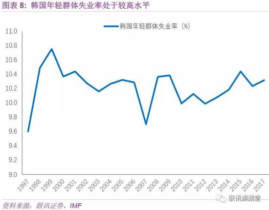 韩国的经济增长没能创造大量的就业机会,就业的弹性系数非常之低,这与韩国重视制造业的传统有关。目前来看,韩国的就业结构性问题对社会影响很大,青少年和女性的就业问题严重。
