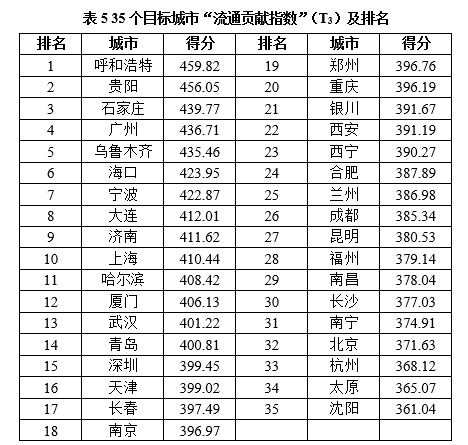 (3)“流通贡献指数”(T3)排名