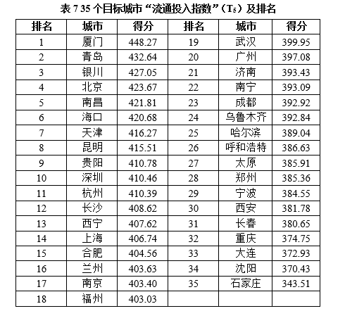 (5)“流通投入指数”(T5)排名