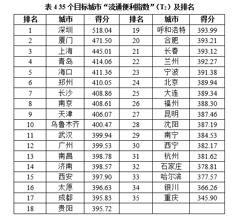 (2)“流通便利指数”(T2)及排名