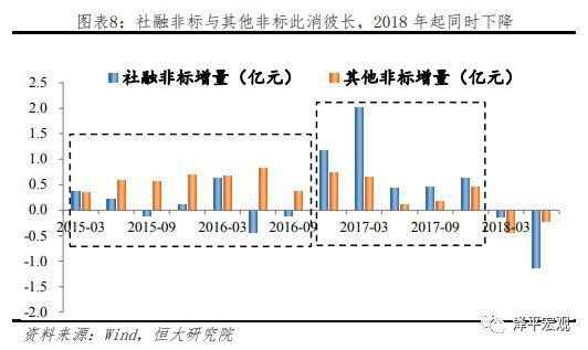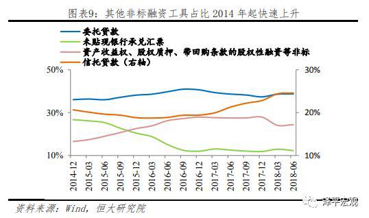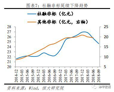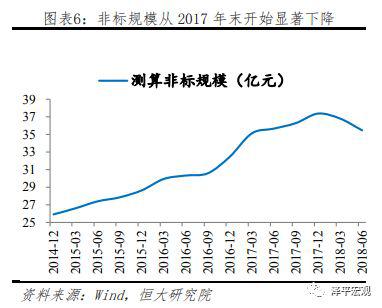 测算数据显示,截至2018年6月,我国非标资产规模约为35万亿,较2017年末下降2.5万亿,其中社融非标规模下降1.25万亿,其他非标规模下降1.3万亿。社融数据显示第三季度社融非标继续下降,单季度减少超1万亿,非标压缩趋势延续。