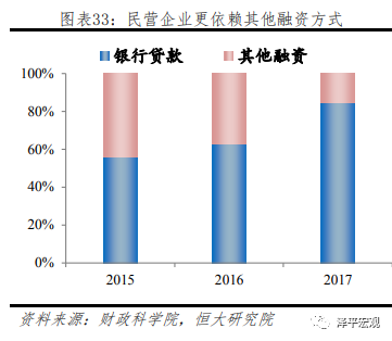 无论从所有制角度还是从行业角度,企业融资均呈现一定结构性特征,而在这样的偏好背后是深层次的经济结构及经济发展历程因素:银行贷款偏好国企、地方政府融资平台、基建行业以及消费行业;债券融资市场偏好国企、重工业、基建行业;股票及股权融资市场偏好信息传输、计算机、制造业;而非标融资则是民营企业、房地产业以及基建行业的重要资金来源。在一个以银行为主体的金融体系中,上述结构性特征实际符合市场客观规律:国有企业占据的行业和领域是经济的主体,基建、消费、重工业曾是或仍是拉动经济增长的重要引擎,风险低但体量大,自然银行信贷及债券融资支持力度较大;而民营企业风险偏好高,又存在治理机制不健全、财务制度不规范、过度投融资、过度多元化等问题,银行等金融机构在市场规律作用下难以形成有效支持,而我国直接融资体系建设缓慢,相关主体仅能通过影子银行方式实现融资,实际是现有金融体系下的一种合理存在。