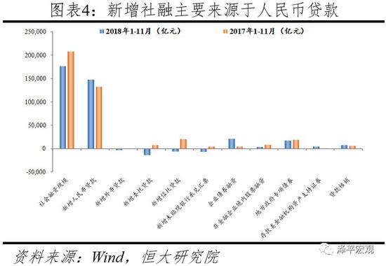 表外收缩导致社融继续下滑,但ABS加快发行、债券融资边际提升以及贷款核销为亮点。从结构来看,人民币贷款仍为支撑社融的主力,但增速放缓,11月新增人民币贷款1.25万亿,存量同比增速12.9%,较上月回落0.1个百分点。表外融资延续缩减态势,较前几个月降幅收窄,但仍为拖累社融主要因素。其中新增委托贷款萎缩程度扩大,而信托贷款及未贴现银行承兑汇票缩减态势边际缓和:11月委托贷款、信托贷款及未贴现银行汇票新增额分别为-1310亿元、-467亿元、-137亿元。未来非标融资的恢复可能还需要监管通过窗口指导的形式放松对银行的限制。直接融资方面,受股市持续低迷影响,股票融资保持低量,当月新增200亿元,同比少增1124亿元。而由于前期多项支持企业债券融资措施效果有所体现、市场利率下行,企业债券净融资新增3163亿元,同比多增2242亿元。此外,存款类金融机构资产支持证券、贷款核销、地方专项债融资分别同比多增909亿元、248亿元和少增2614亿元。