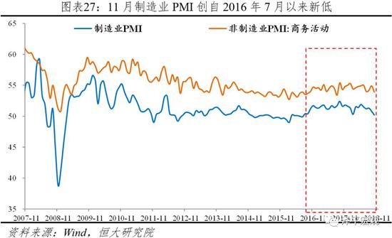 11月中国制造业PMI降至临界点50%,创2016年8月以来新低,拖累力量主要是生产、新订单、采购量和价格指数。