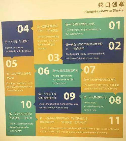 蛇口改革开放博物馆有一张“蛇口创举”图,上面列着蛇口创造的11个第一,其中有一个叫“第一次推行定额超产奖”。