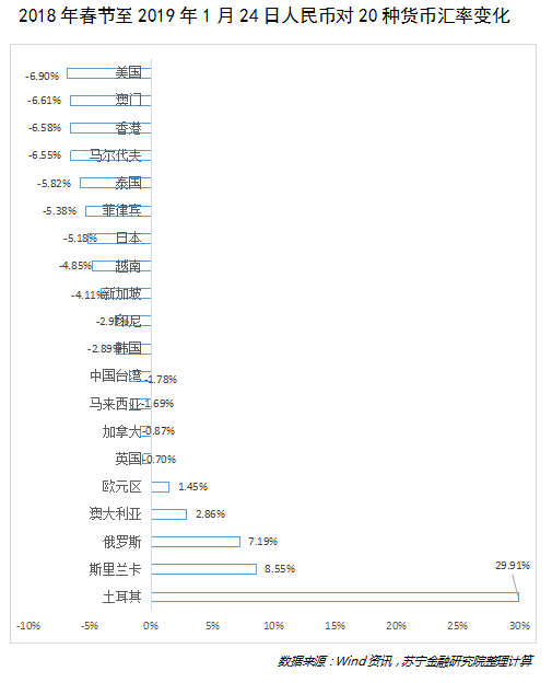 回到本文的初衷,与去年春节期间相比,人民币在这些旅游目的地的购买力有多大变化呢?