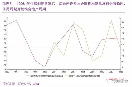 其次,加快住房分配货币化改革,停止福利分配住房制度,房地产开始商品化,彻底改变了国内经济的运行路径与信用周期的主导逻辑。