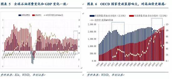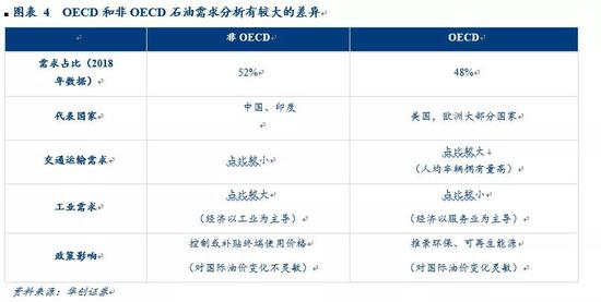 从需求来看,石油需求可以分为OECD(48%)和非OECD国家(52%)。相比非OECD国家对石油的刚性需求(主要受经济增长驱动),OECD国家对高油价反应更加灵敏(除经济增长外,受政策影响较大)。