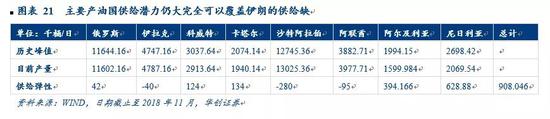 下半年伊核协议豁免国到期伊朗供给变化或再次冲击市场,OPEC国家或增产对冲:11月5日美国对伊朗的第二批制裁正式生效,但中国(占伊朗石油出口24%)、韩国(占14%)、印度(占18%)、日本(占5%)、意大利(占7%)、土耳其(占9%)、希腊及中国台湾等8个国家和地区暂时获得豁免,期限为180天(截止到2019年上半年)。下半年豁免结束后,伊朗禁运或将再次冲击市场,但预计OPEC国家或将增产对冲。伊朗是重要的石油供给国和出口国,2012年制裁期间,伊朗石油产量和出口量分别下降24%和134%。全球石油供应量下降约120万桶/天。但是下半年OPEC国家严格执行减产协议动能或随着油价的企稳回升减弱,预计产量将有所上升。而主要产油国的供给弹性仍然较大(与历史峰值相比,主要产油国仍有174万桶/天的供给弹性),完全可以覆盖伊朗的供给缺口(上次制裁期间最低产量和目前产量的缺口)。