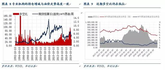 多空比持仓指标:价格的波动从根本上来说是资金博弈的结果。多空比持仓数据是市场投资者对于价格走势的直观反映,尤其是基金持仓的数据,更能够说明专业投资者对于未来油价的看法。历史数据显示,通常以基金为代表的专业机构的持仓增减与油价走势高度一致,因此分析基金的持仓变化对判断近期价格走势有指导意义。