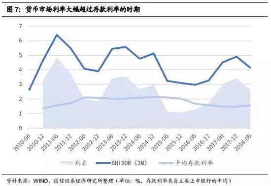 比如,如果货币市场利率大幅高过存款利率(典型的是2013年“钱荒”之后的时期),因居民无法直接参与货币市场,那么他们将积极购买货币市场基金或理财产品,从而享受更高回报,于是对存款吸收形成压力。而货币市场基金,本质上成为居民套取存款利率与货币市场利率之间利差的工具。这跟早年利率管制时代,利率更高的民间借贷吸引走了大量存款资金,是一个道理。