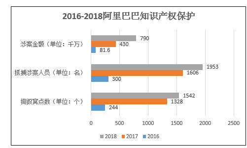 我们根据阿里巴巴提供的知识产权保护报告提取整理了2016至2018年打假数据(如下),数据显示近三年制假贩假涉案金额、人员、以及捣毁窝点数一直处于上升态势,一方面反映了阿里巴巴利用高科技打假的不懈投入,另一方面也反映了假货市场屡禁不止的现实。