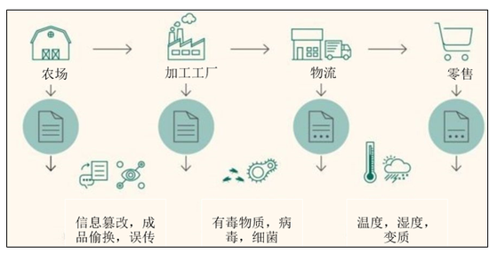 沃尔玛等一些美国食品公司巨头在2017年就开始尝试与IBM等科技公司合作开发区块链来提升食品安全性。他们的初衷很简单,即缩减食品病毒事件的调查时间并控制食品病毒的传播。传统的食品供应链并不透明,终端消费者根本无法控制或了解食品在运输过程中的环境信息和不利因素,例如没有社会责任意识的农场端可能会篡改信息、偷换产品,加工工厂由于落后的生产工序/环境可能会将微生物病毒带入食品中,仓储物流一端食品也许会受温湿度的影响发生变质等。而所有会影响食品安全的信息,消费者根本无从知晓,也没有能力去追溯相关信息。